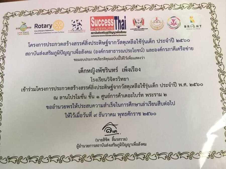 ประกวดสร้างสรรค์สิ่งประดิษฐ์จากวัสดุเหลือใช้รุ่นเด็ก ประจำปี 2560 S:0