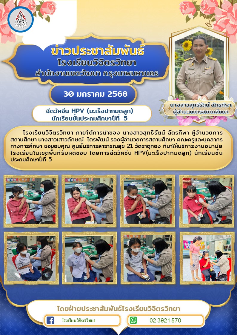 ฉีดวัคซีน HPV(มะเร็งปากมดลูก) นักเรียนชั้นประถมศึกษาปีที่ 5 ปีการศึกษา2567