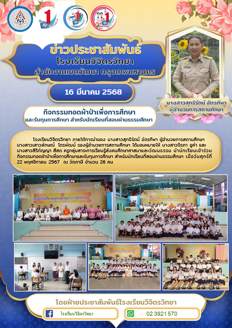กิจกรรมทอดผ้าป่าเพื่อการศึกษา และรับทุนการศึกษา สำหรับนักเรียนที่สอบผ่านธรรมศึกษา