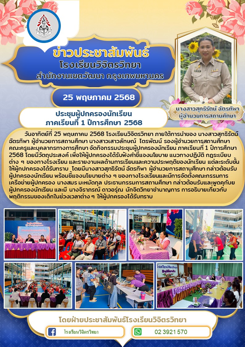 โรงเรียนวิจิตรวิทยา ภายใต้การนำของ นางสาวสุทธิรัตน์ ฉัตรทิพา ผู้อำนวยการสถานศึกษา นางสาวเสาวลักษณ์ ไตรพัฒน์ รองผู้อำนวยการสถานศึกษา คณะครูและบุคลากรทางการศึกษา ขอขอบคุณ วิทยากรจากศูนย์บริการสาธารณสุข 21 วัดธาตุทอง ได้มาให้ความรู้เกี่ยวเรื่องของยาเสพติดในหัวข้อ “ เยาวชนรุ่นใหม่ห่างไกลยาเสพติด ” โดยมีนักเรียนชั้นมัธยมศึกษาชั้นปีที่ 1-3 เข้าร่วมกิจกรรม เพื่อสร้างความตระหนัก และร่วมกันสร้างภูมิคุ้มกัน ป้องกันไม่ให้ยาเสพติดเข้ามาในสถานศึกษา
