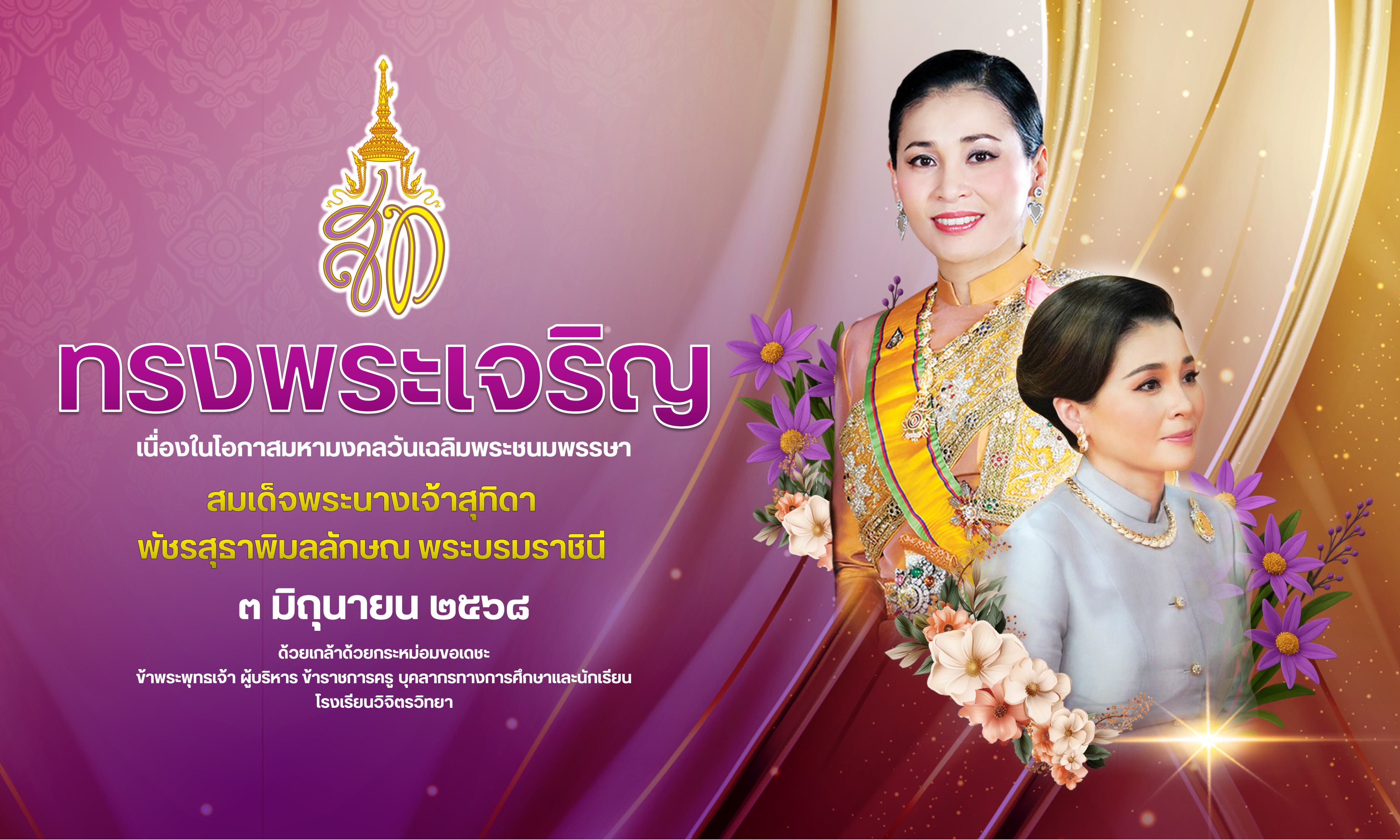 วันเฉลิมพระชนมพรรษา ๓ มิถุนายน พระพรสมเด็จพระนางเจ้าสุทิดา พัชรสุธาพิมลลักษณ พระบรมราชินี ประจำปีพุทธศักราช ๒๕๖๘