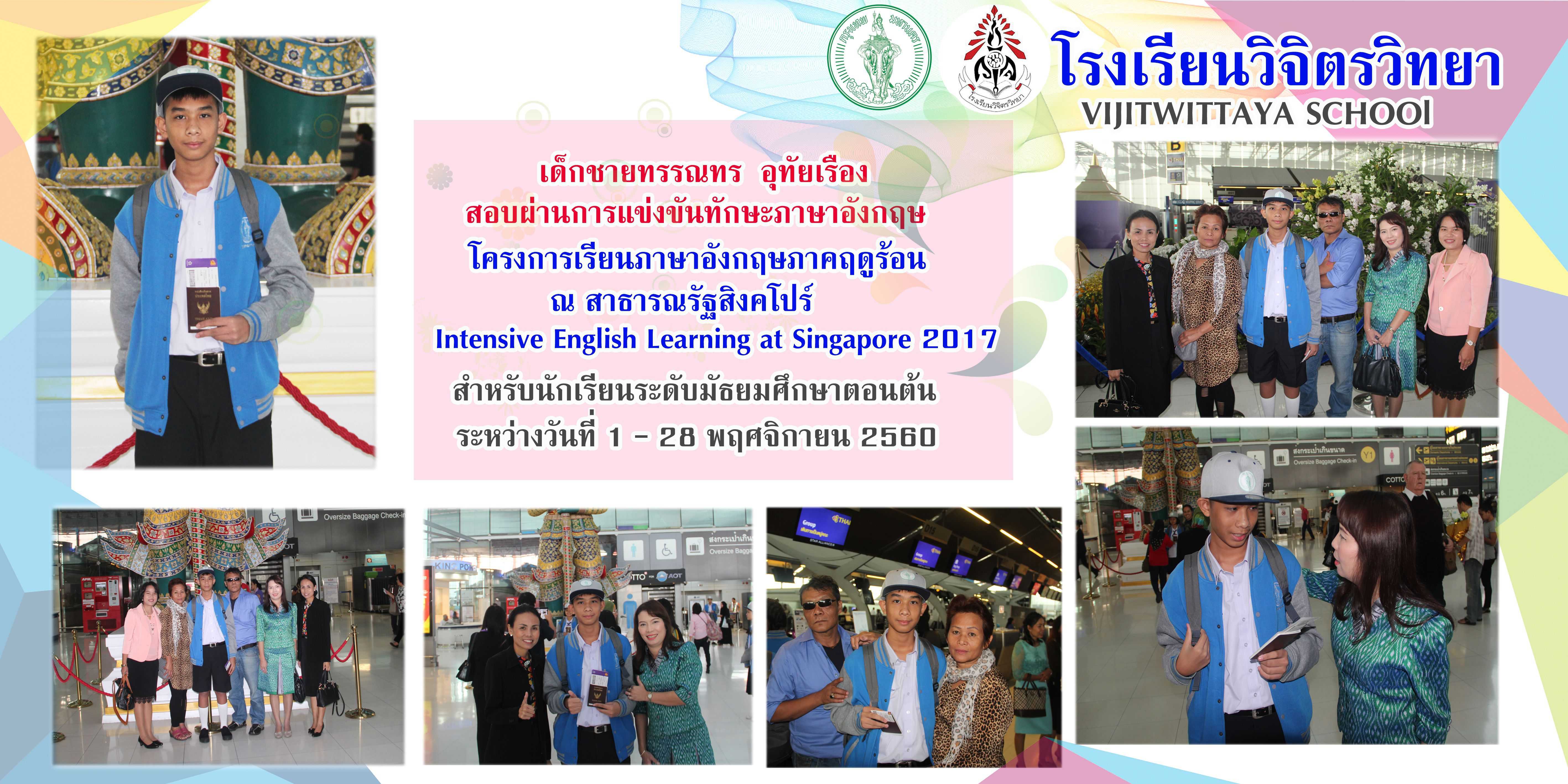 เด็กชายทรรณทร อุทัยเรือง สอบผ่านการแข่งขันทักษะภาษาอังกฤษ ?โครงการเรียนภาษาอังกฤษภาคฤดูร้อน ณ สาธารณรัฐสิงคโปร์? Intensive English Learning at Singapore 2017