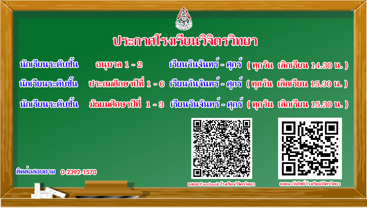 ประกาศจากโรงเรียนวิจิตรวิทยา เรื่อง วันเรียน และเวลาเลิกเรียน