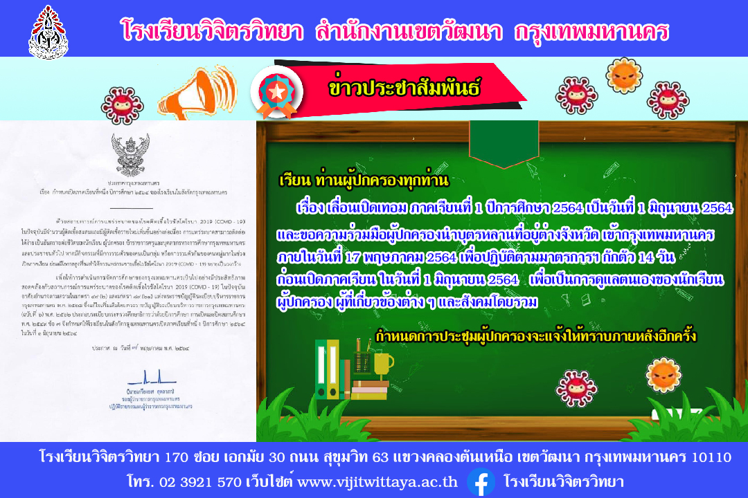 ประกาศเปิดภาคเรียนปีการศึกษา 2564
