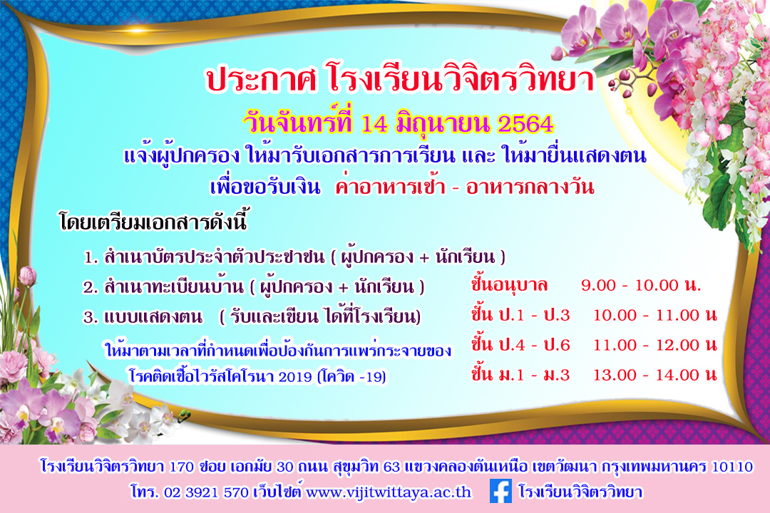 ขอรับเงินค่าอาหาร เช้า - กลางวัน