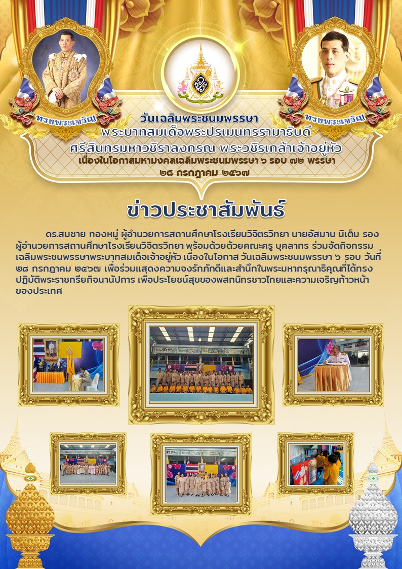 วันเฉลิมพระชนมพรรษา พระบาทสมเด็จพระปรเมนทรรามาธิบดี ศรีสินทรมหาวชิราลงกรณ พระวชิรเกล้าเจ้าอยู่หัว เนื่องในโอกาสมหามงคลเฉลิมพระชนมพรรษา ๖ รอบ ๗๒ พรรษา