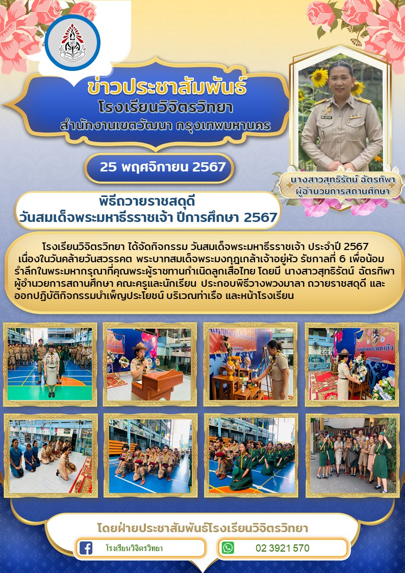 พิธีถวายราชสดุดี วันสมเด็จพระมหาธีรราชเจ้า ปีการศึกษา 2567